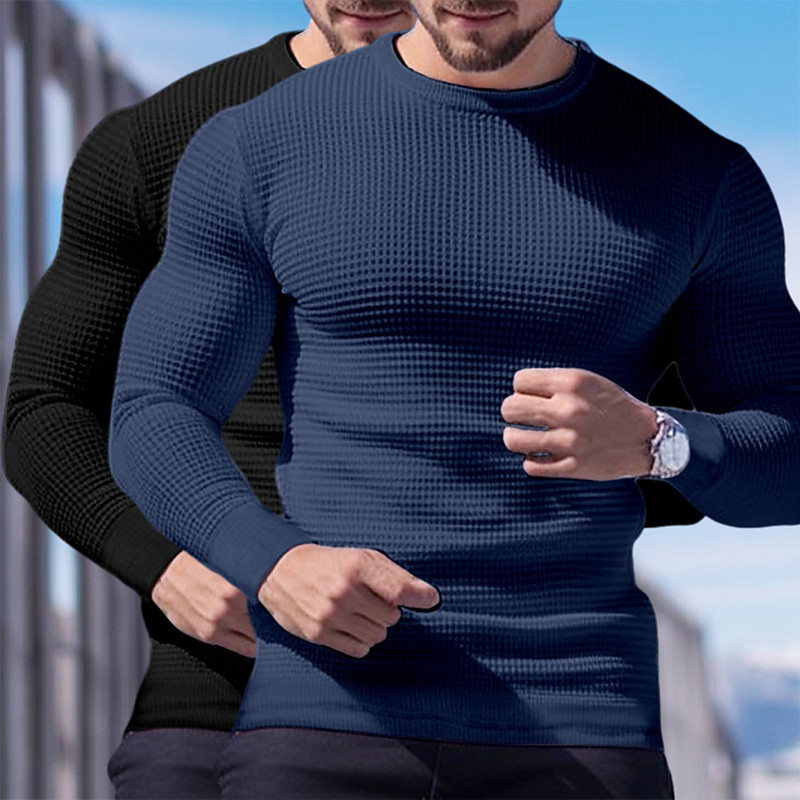 2 Piece Men's Waffle Shirt T Shirt Tee Top Long Sleeve Shirt Long Sleeve Crew Neck Crewneck Fall Spring Fall Plain Fashion Designer Basic Knitted Vacation Street Casual Top Tee for Men