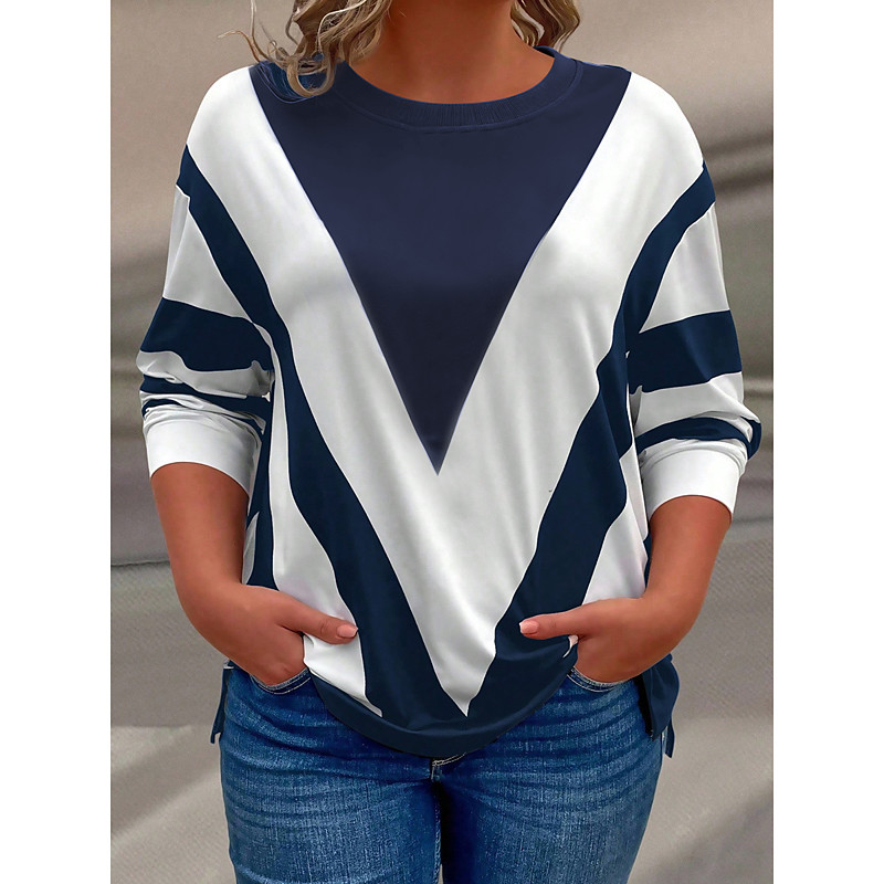 Women's Pullover Sweatshirt Graphic Geometric Casual Long Sleeve Crew Neck Regular Tops Street Dailywear Casual Patchwork Blue Purple Orange Green Fall Winter