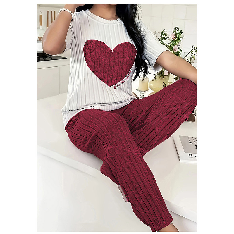 Women's Pajamas Loungewear Pajama Set Warm Active Fashion Pant Home Party Long Sleeve Crew Neck Pink Red Purple Gray Spring Fall Winter