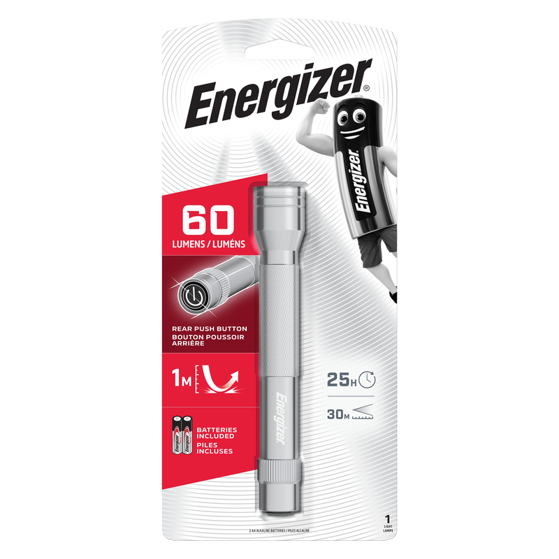 Energizer Metal LED Torch 60 Lumens + 2×AA Batteries