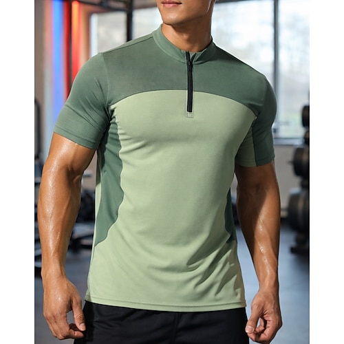 Per uomo T-shirt da corsa Maglia a compressione Maglia atletica Sport in alto Patchwork Cerniera a un quarto Manica Corta Top Estate Blocco di colori Asciugatura Rapida Traspirante Allenamento in