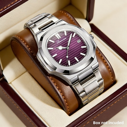 Un orologio da uomo originale in stile business con cinturino in lega resistenza all'acqua IPX7 display luminoso di data e giorno custodia per orologio sportivo in quarzo
