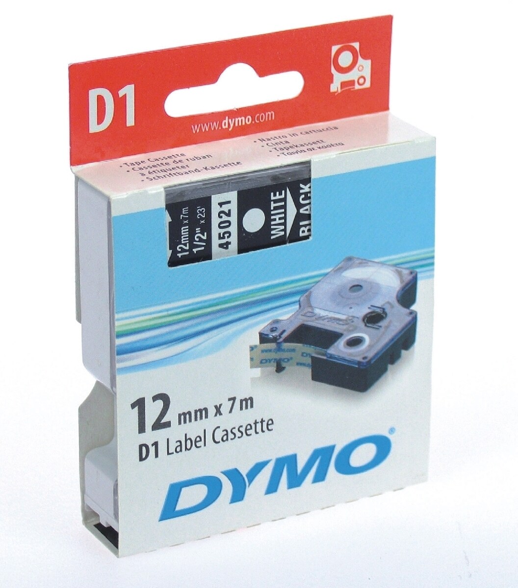 Dymo D1 Labeltape 12mm, Hvid På Klar