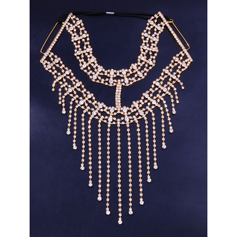 Women's Crystal Fringe Face Mask Accessory - Rhinestone Masquerade Headpiece for Fashion Shows, Costume Parties, Stage Performances and Glam Makeup Looks