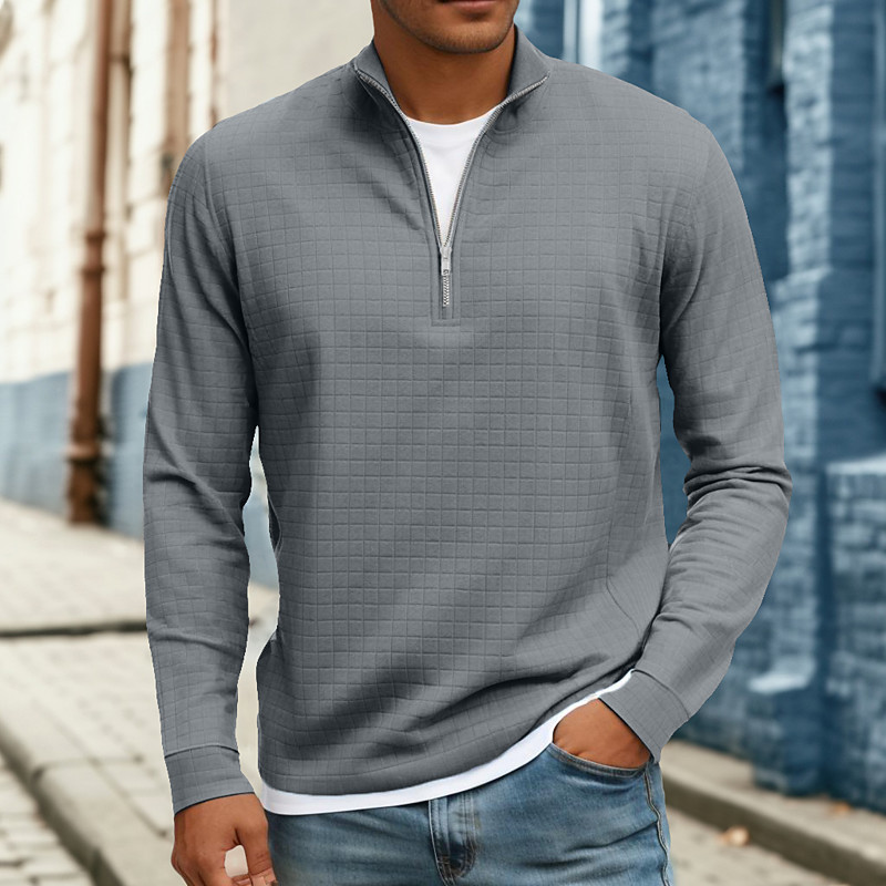 Men's Waffle Tee T Shirt Quarter Zip Tee Long Sleeve Stand Collar Fall Winter Spring Fall Solid Color Textured Knitwear Daily Casual Zip Up Warm Casual Daily Outdoor Black Gray White Top Tee for