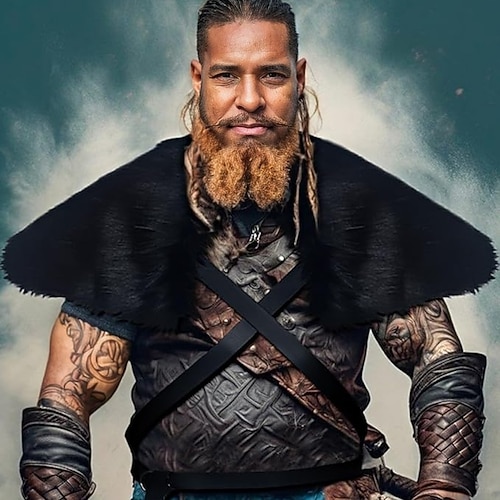 Retrò Vintage Medievale Rinascimento Mantello Cintura in Vita Costume in pelliccia sintetica Guerriero Vichingo Costume Per uomo Vichingo Performance Feste LARP Adulti Scialle