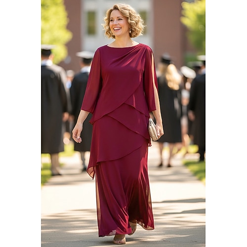 Linea ad A Lunghezza al pavimento Lunghezza alla caviglia Vestito da Festa Abito da Cocktail Abito da invitata a nozze Abito da cerimonia per signora Manica 3/4 Scollo a Barca Elegante Semplice