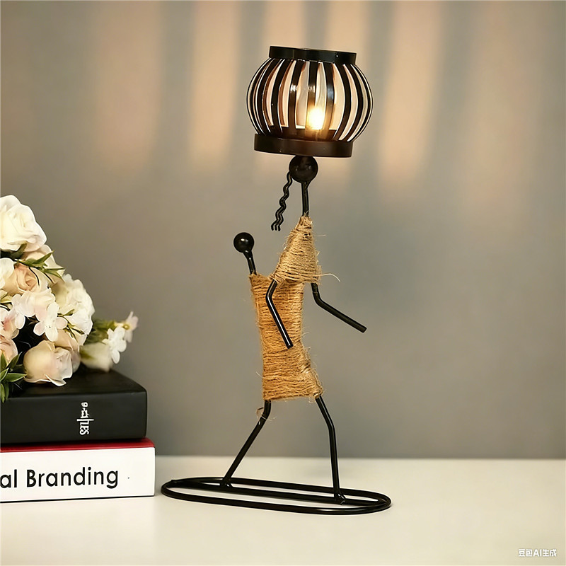 Nordic Metal Candlestick Abstract Character Sculpture Candle Holder Decors Handmade Figurines Home Decoration Art Gifts Button Battery Powered 1PC