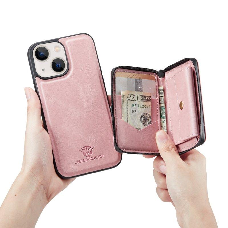 Brieftaschenetui mit Bodenklappe für iPhone 15 Plus Magnet Case - rosa