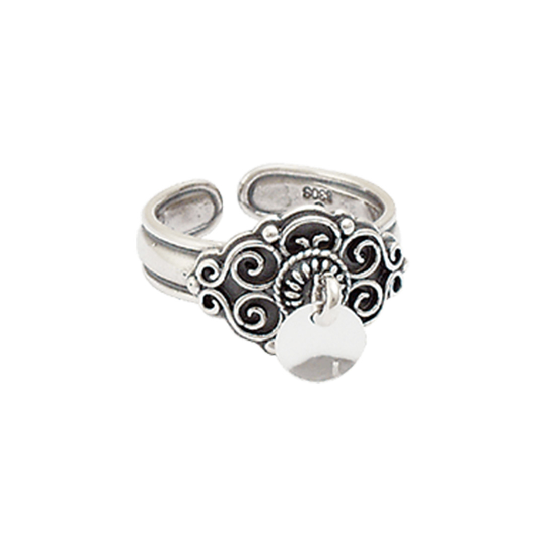 Bunadsring i 830 oksidert sølv med løv