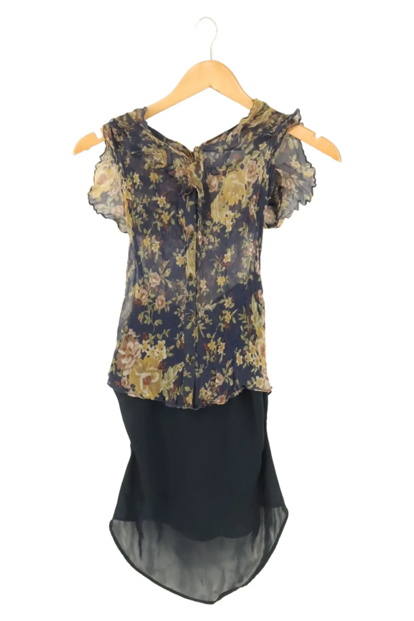 MASSIMO DUTTI Bluse Gr. 36 Blau Floral Elegant Vintage Damen