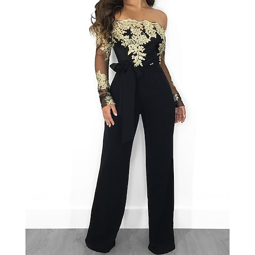 Per donna Tuta Elegante Floreale Manica Lunga Gamba larga Senza Spalle Patchwork Ricamato Feste Streetwear Vestibilità regolare Blu Nero Vino Primavera