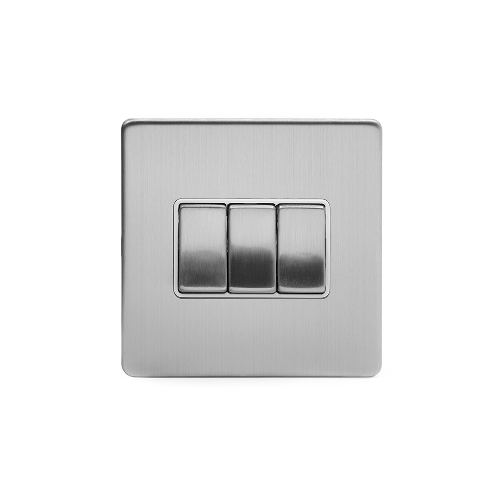 Soho Lighting Brushed Chrome 3 Gang 2 Way 10A Light Switch Wht Ins Screwless - Size: 86mm x 86mm x 4.5mm