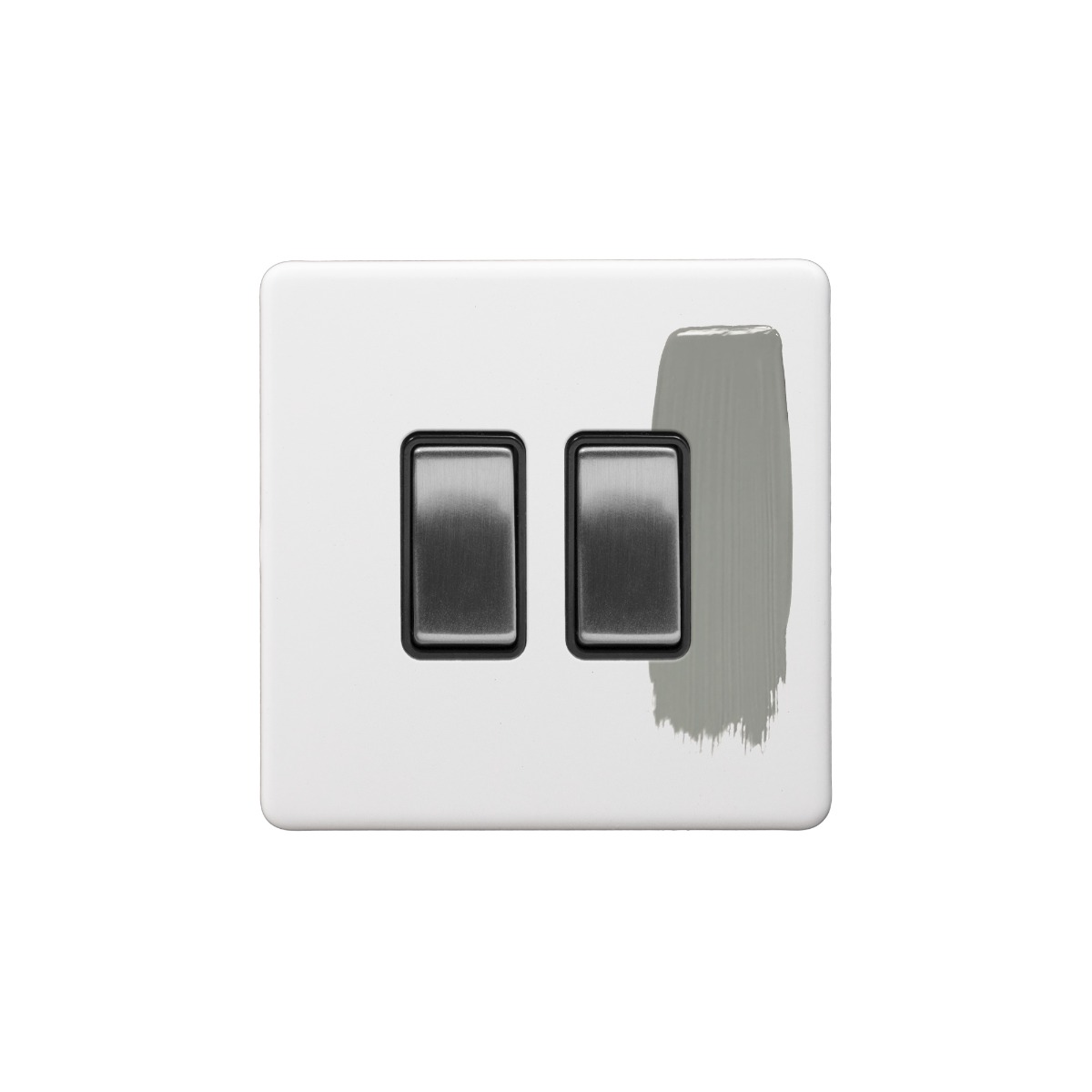 Soho Lighting Primed Paintable 2 Gang Intermediate Switch 10A with Brushed Chrome Switch and Black Insert - Size: 86mm x 146mm x 4.5mm