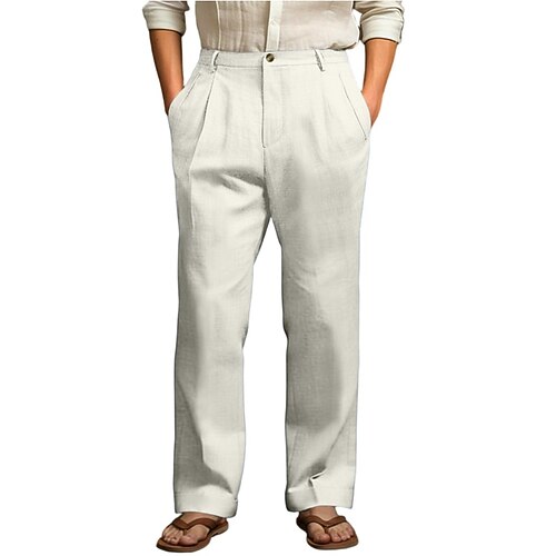 Per uomo Pantaloni di lino Pantaloni Pantaloni estivi Pantaloni da spiaggia A cordoncino Vita elastica Gamba dritta Liscio Comfort Traspirante Informale Giornaliero Per eventi Di tendenza Classico