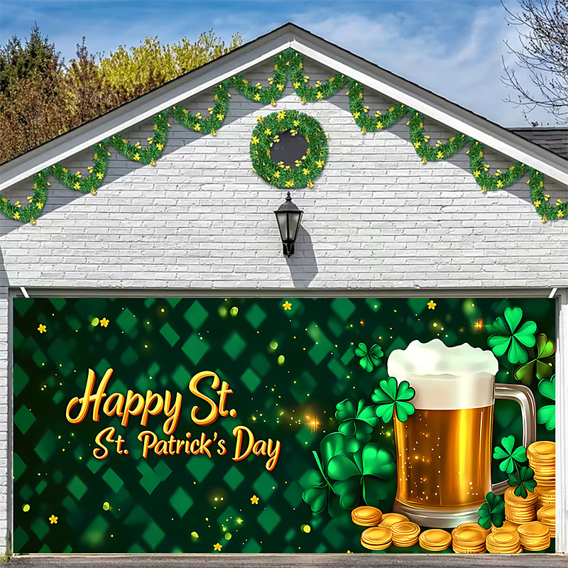St. Patrick's Day Tapestry Garage Door Cover Large Hanging Backdrop Green Hat Vintage 3D Party Outdoor Shooting Backgrounds Front Door Home Decor