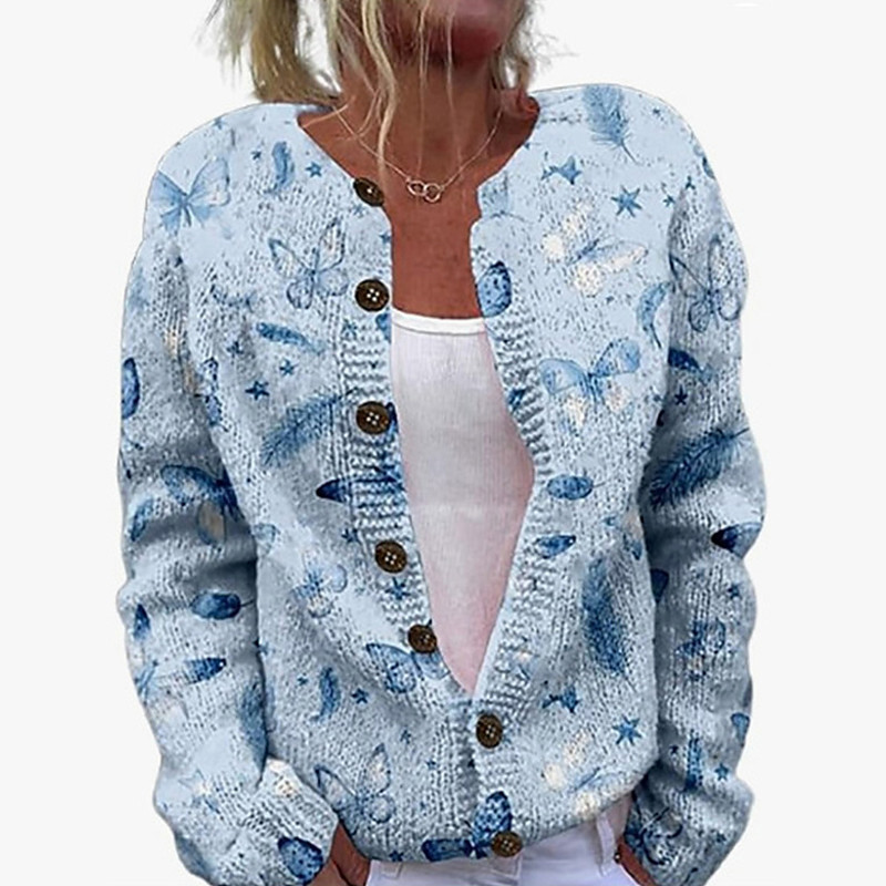 Women's Sweater Cardigan Fashion Streetwear Daily Butterfly Ribbed Open Front Knitted Print Long Sleeve Long Tops Knit Holiday Going out Weekend White Blue Fall Winter