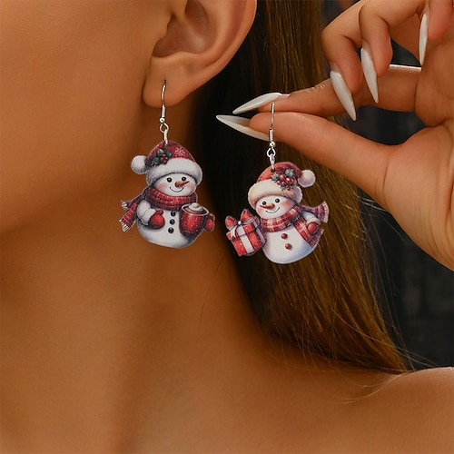 orecchini da donna a forma di pupazzo di neve in acrilico natalizio: design festoso con sciarpa e cappello, perfetti per le feste e per l'abbigliamento invernale