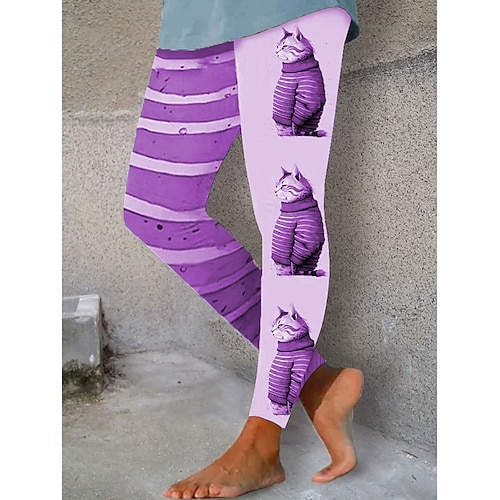 Per donna Leggings Vacanza Vintage Moda Lunghezza intera Vita Alta Grafico Gatto Stampa Calore Termico Morbido Traspirante Elasticizzato Quotidiano All'aperto Vacanza Blu Rosa Viola Verde Primavera