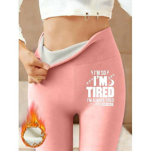 Per donna Pantaloni in Pile Leggings Essenziale Casual Lunghezza intera Vita Alta Lettera Slogan Calore Termico Comodo Confortevole Elasticizzato All'aperto Casual Casuale Rosa Blu Verde Grigio