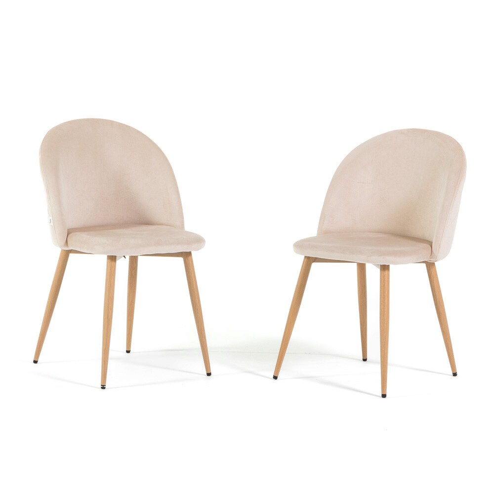 RATTATAN Set aus 2 Innenstühlen aus Samt, gepolstert, mit Metallbeinen, elegantes Design für Küche, Esszimmer, Bar und Restaurant – Sara – Creme/Holzoptik