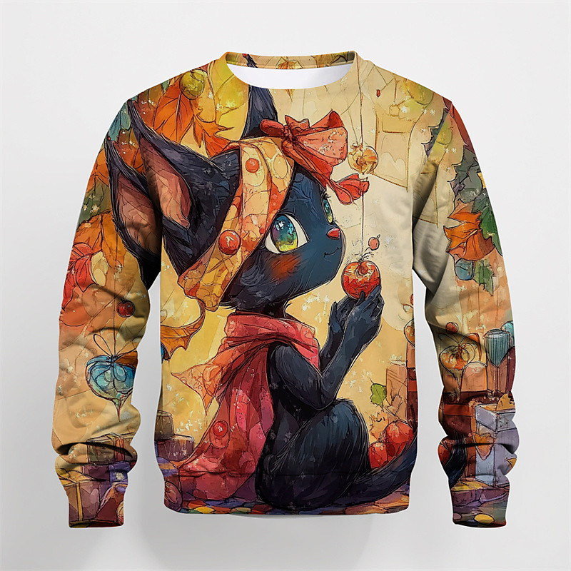 Boys 3D Graphic Cartoon Cat T shirt Tee Long Sleeve Spring Fall Fashion Basic Kids 4-12 Years Crew Neck Outdoor Casual Daily Regular Fit