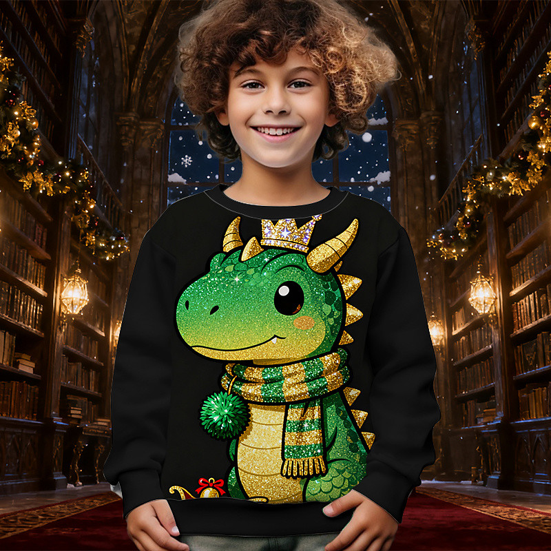 Boys' 3D Dinosaur Snowman Sweatshirt Long Sleeve Spring Fall Fashion Basic Kids 4-12 Years Crew Neck Outdoor Casual Daily Regular Fit