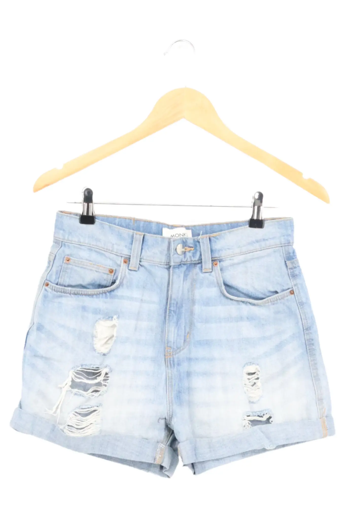 MONKI Jeans Shorts Blau Gr. S Damen Used-Look Freizeit