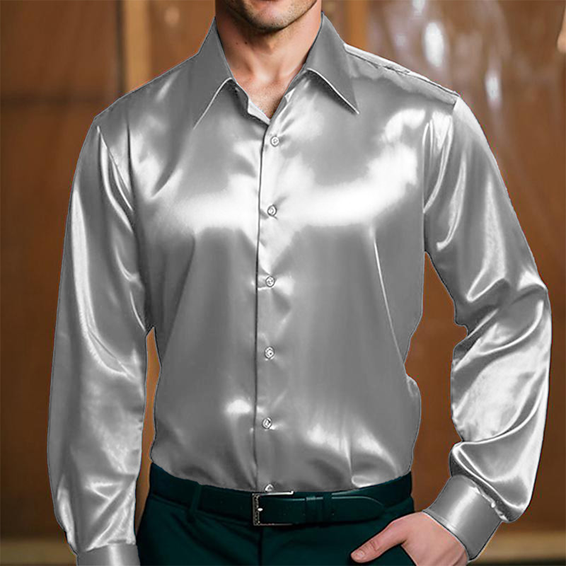 Men's Shirt Silk Like Satin Shirt Casual Shirt Plain Formal Wedding Silver Black Gold Green Long Sleeve Lapel Spring Fall All Seasons Clothing Apparel Ruched