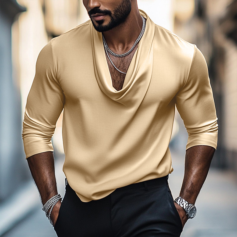Men's Shirt Silk Like Satin Shirt Casual Shirt Plain Formal Wedding Black White Blue Purple Long Sleeve Cowl Neck Spring Fall All Seasons Clothing Apparel Ruched