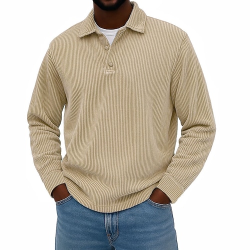 Per uomo Camicia di Velluto a Coste Testurizzato Casuale Sportivo Bavero Manica Lunga Moda Essenziale Tinta unica Bottoni Caldo Autunno Inverno Vestibilità regolare Nero Blu scuro Blu chiaro Cachi