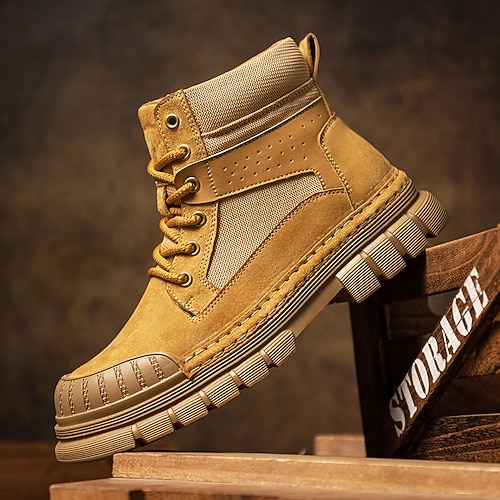 stivali antinfortunistici da lavoro in similpelle gialla da uomo con suola ammortizzante e protezione in acciaio, stivali da costruzione resistenti per lavori all'aperto e lavori industriali