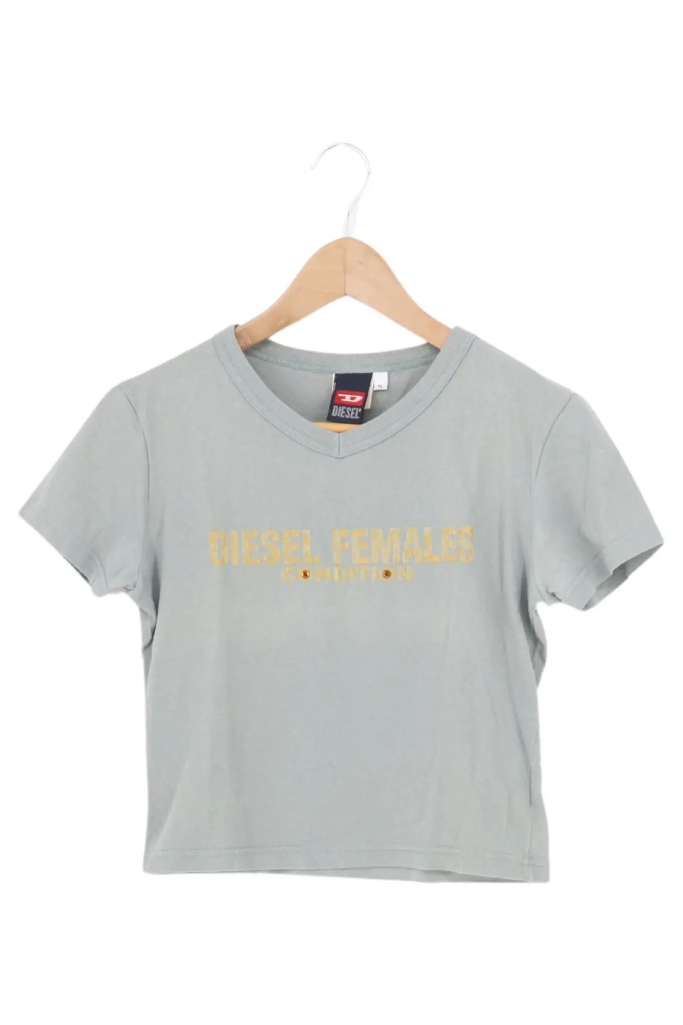 DIESEL T-Shirt Damen S Grau Baumwolle Kurzarm Casual Look