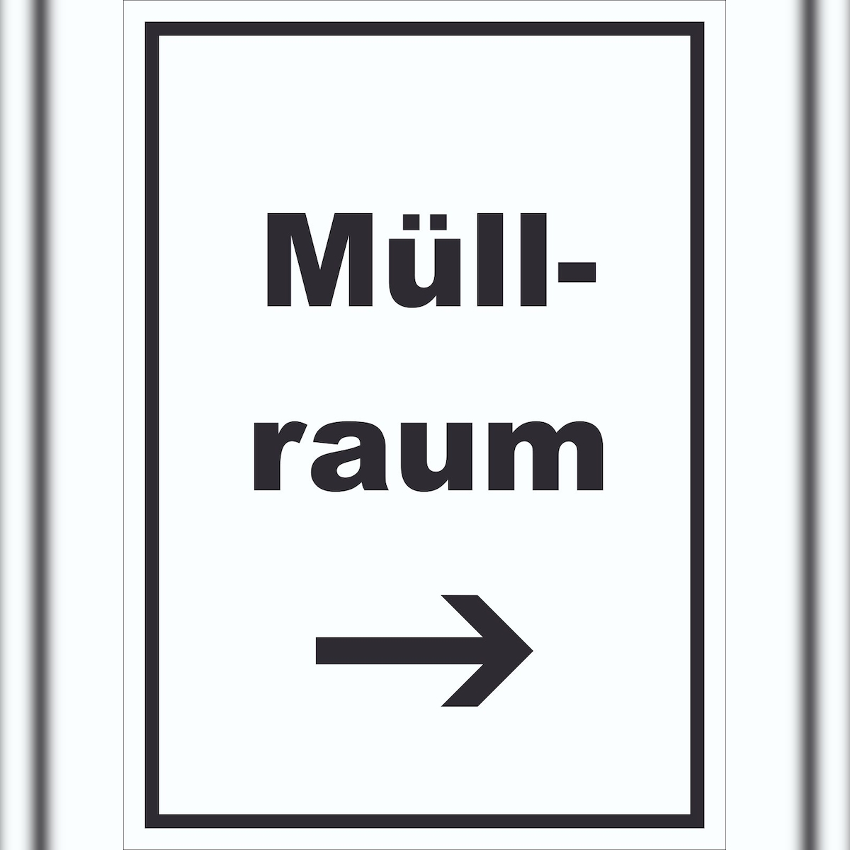 HB-Druck Müllraum Schild mit Text Richtungspfeil rechts Abfall Mülltrennung hochkant A4 Rückseite selbstklebend