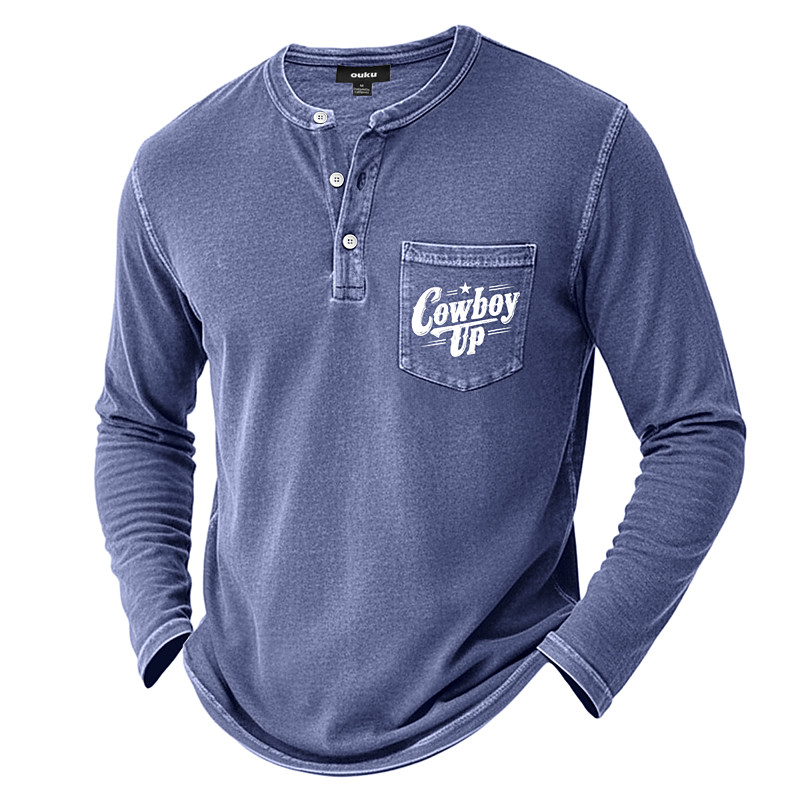 Men's Henley Shirt T shirt Tee Long Sleeve Vintage Letter Print Retro Vintage Casual Printed Pocket Graphic Henley Casual Spring Fall All Seasons Blue Purple Brown Henley T-Shirt