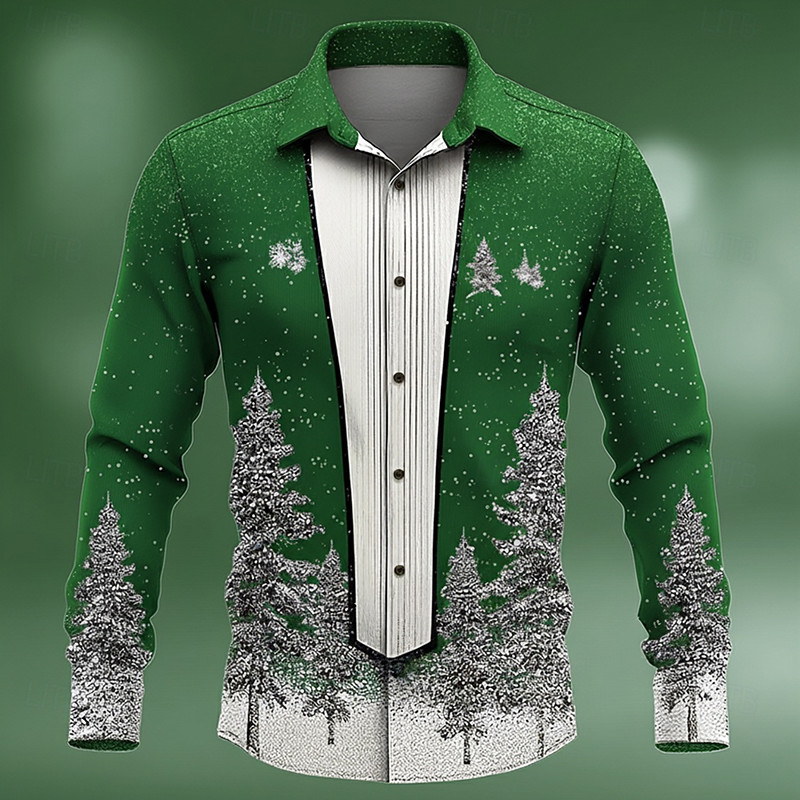 Christmas Men's Christmas Costume Faux Collar and Suit Design Suit Tie Printed Tuxedo Shirt Button Up Shirt Long Sleeve Funny Outdoor Holiday Spring Fall Turndown 3D Print Collared Shirts Blue Black