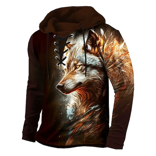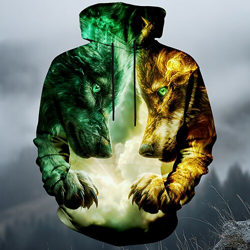 Per uomo Lupo Stampa 3D Stampe Grafiche Felpa con Cappuccio Felpa con cappuccio Felpe con cappuccio Felpa Moda Streetwear Essenziale Confortevole Manica Lunga Con Cappuccio Vacanza Lavoro