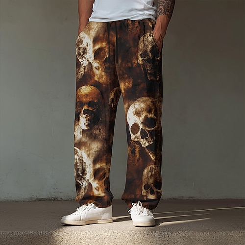 Costumi da uomo teschio pantaloni pantaloni baggy pantaloni casual vita media stile gotico scuro vacanza vita con cordoncino elastico pantaloni simili al lino con tasche estate primavera autunno 3D
