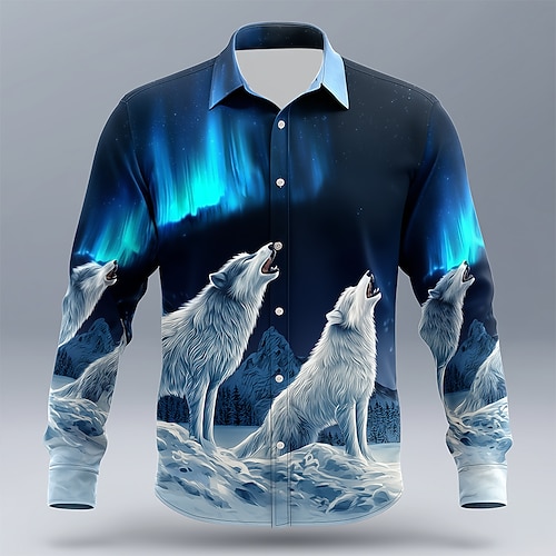 Per uomo Animale Lupo Aurora Camicia Camicia con Bottoni Manica Lunga Vintage Retrò All'aperto Casuale Caccia Primavera Autunno Collo ripiegato Stampa 3D camicie con colletto Blu scuro#1 Blu scuro