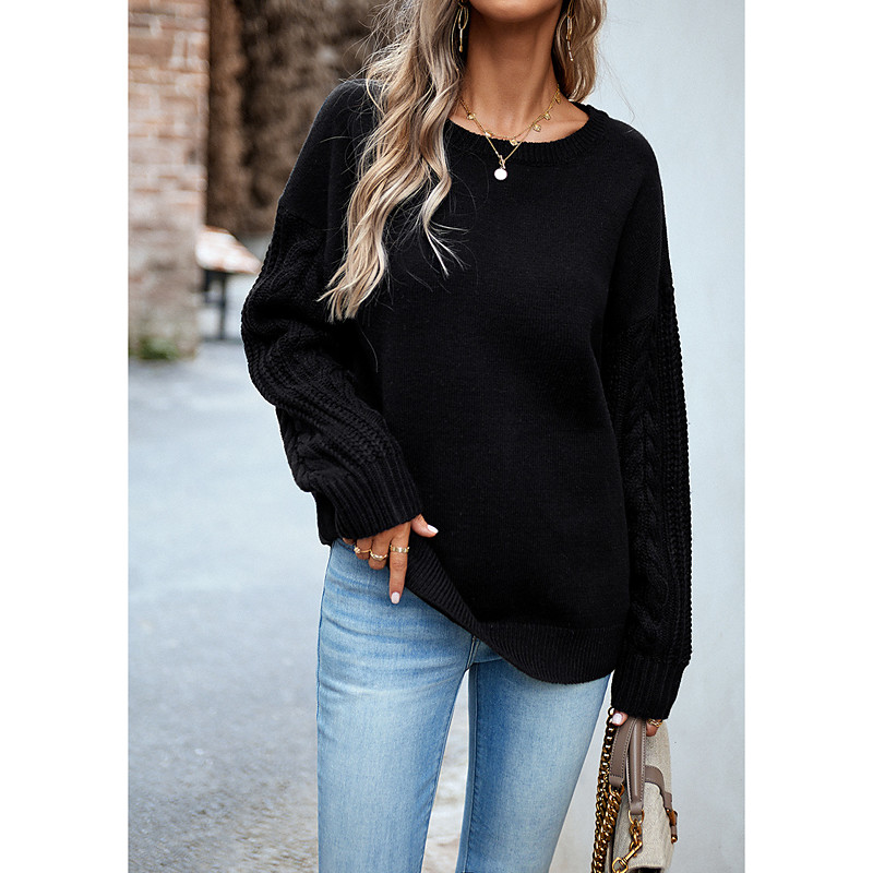 Women's Sweater Pullover Sweater Jumper Casual Sweater Fashion Streetwear Soft Solid Color Crew Neck Braided Long Sleeve Regular Tops Knit Work Weekend Black White Fall Winter