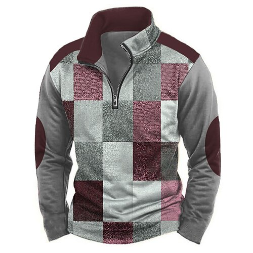 Per uomo Geometrico Plaid Felpa Casual Vintage Retrò Manica Lunga Collo Alto All'aperto Abbigliamento casual alla moda Rosso Blu Viola Verde Cerniera Zip a un quarto Autunno Inverno progettista S M L
