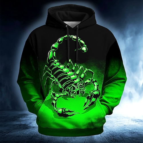 Per uomo Scorpione Felpa con Cappuccio Felpa Cool Festa Manica Lunga Girocollo Club Abbigliamento casual alla moda Blu Rosso Verde Coulisse Autunno Inverno progettista S M L XL XXL XXXL