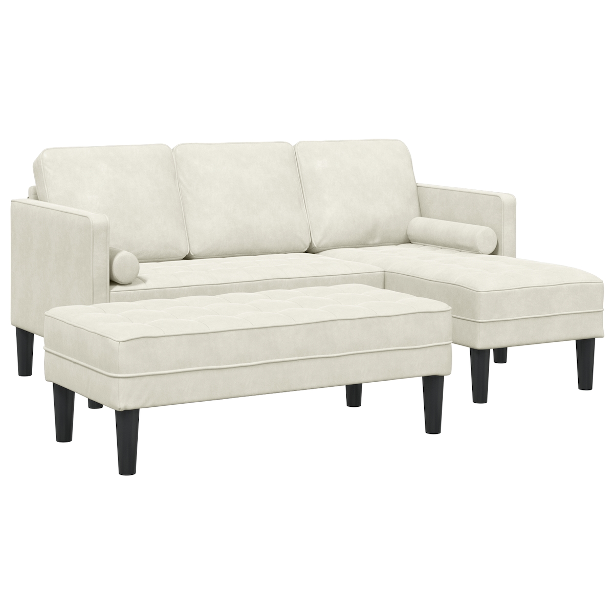 vidaXL Garten-Sofa mit Bank und Kissen L-förmiger Creme-Samt