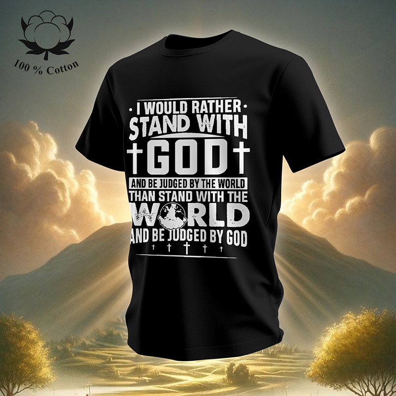 Men's Graphic Tee: Christian Faith Statement 'Stand With God, Be Judged By God' 100% Cotton Short Sleeve