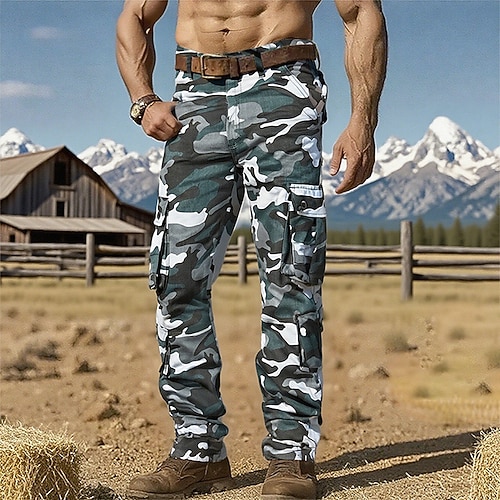 Herren Cargo-Hosen Hose Wanderhose Camo-Hosen Knöpfe Mehrere Taschen Tarnung tragbar Outdoor Täglich Campen und Wandern Mode Klassisch Tarnung Khaki Schwarz