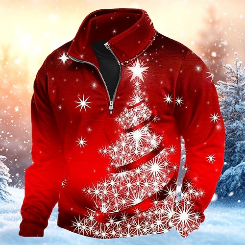 Natale Per uomo Albero di Natale 3D Felpa Sport Moda Casual Manica Lunga Con cerniera Casa Feste Lavoro Abbigliamento casual alla moda Rosso Blu Viola Verde Con zip Autunno Tutte le stagioni