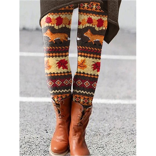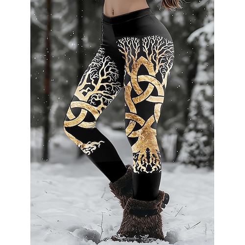 Leggings da Donna Vacanza Stile Vintage Etnico Lunghezza Intera Alta Vita Grafica Teschio Stampa 3D Asciugatura Rapida Traspirabilità Morbida Elasticizzata Esterna Casa Casual Rosa Rossa Blu Viola