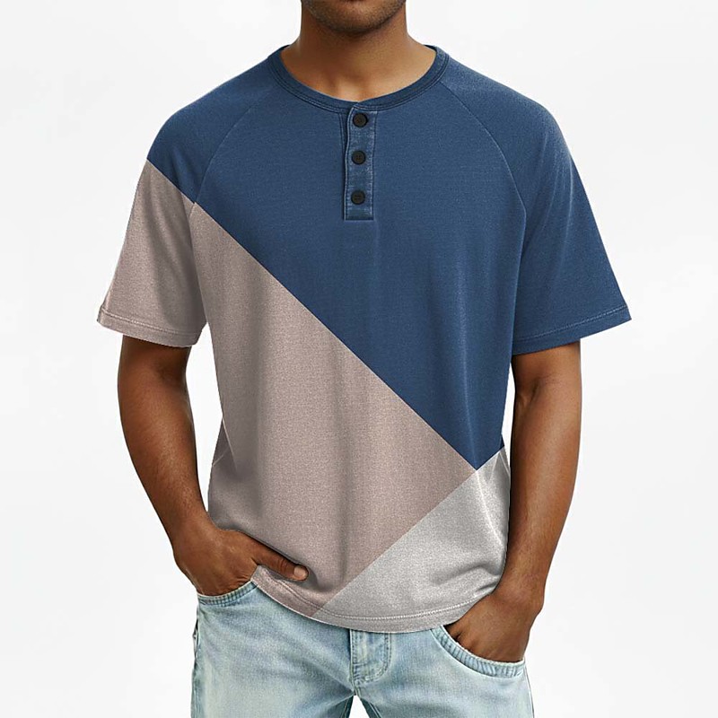 Men's Geometric Color Block Henley Shirt T shirt Tee Short Sleeve Fashion Designer Casual Daily Outdoor Spring Fall All Seasons Brown Dark Blue Purple Dark Green Henley Henley T-Shirt