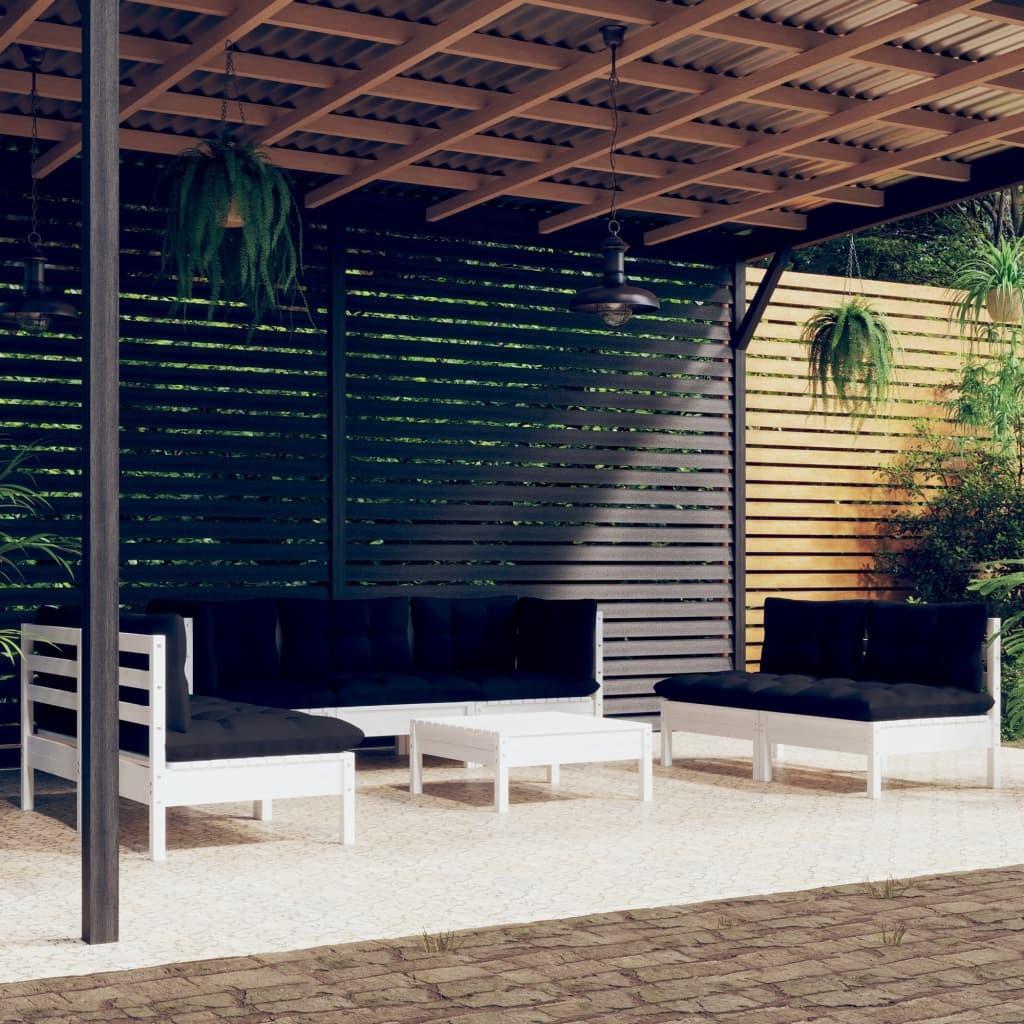 Loungesæt til haven 7 dele massivt fyrretræ hvid