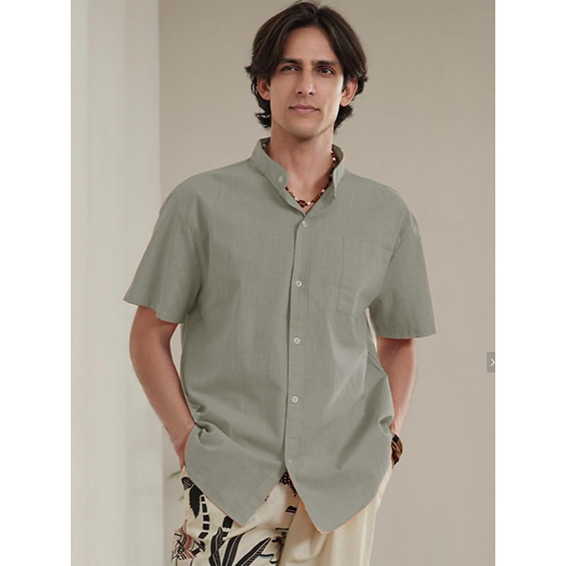 10% Linen Front Pocket Men's Linen Shirt Casual Shirt Black White Yellow Short Sleeve Plain Henley Spring Summer Vacation Hawaiian Clothing Apparel